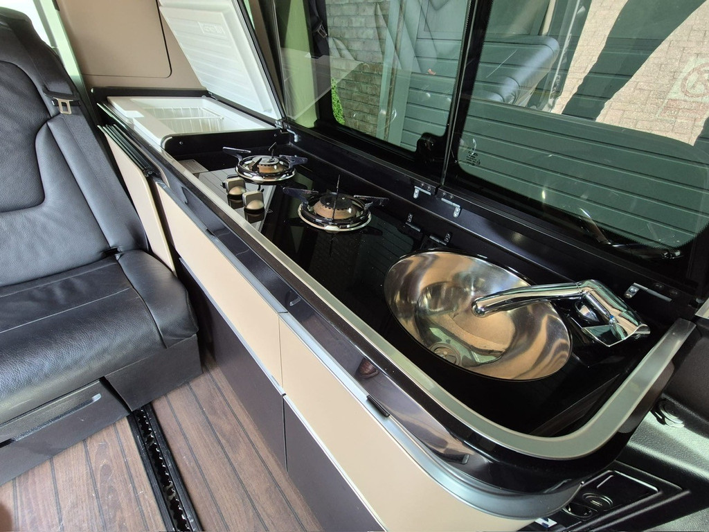 Terwijl ik foto's aan het maken ben word ik echt meer en meer enthousiast!! Allereerst excuses want ik was zo enthousiast dat ik deze camper bus ongepoetst alvast op de foto heb gezet. Deze zeer nette en complete Mercedes-Benz MARCO POLO verkeert echt in een hele mooie staat. Als kampeerder heb je dan ook echt alles aan boord. Zo slim bedacht echt fantastisch!! De auto is voorzien van 4 zitplaatsen en 4 slaapplaatsen. Uiteraard alle standaard benodigdheden zoals stromend water, een kookstel en een koelkist/kast is aan boord. De luifel is netjes en de zijdeur en kofferklep openen en sluiten elektrisch. Verder heeft deze Marco Polo een trekhaak met afneembare kogel. Dus een aanhanger, fietsendrager of caravan kan zo mee. Ook heeft deze bus een Bearlock slot mocht de verzekering dat eisen. Al met al een pracht exemplaar die we alleen nog even opfrissen en met afleverbeurt en verse APK aankomende week klaar gaan stomen. Instappen en genieten maar. CE LA VIE!!
